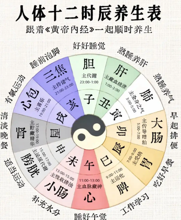 此时是人体最大的腑三焦经运行,主持诸气、疏通水道。